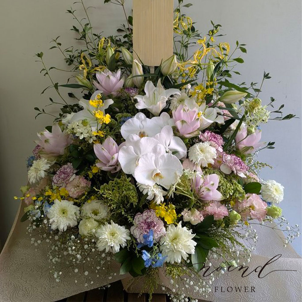 【 豪華 蘭入り】お供えお悔やみ生花アレンジメント